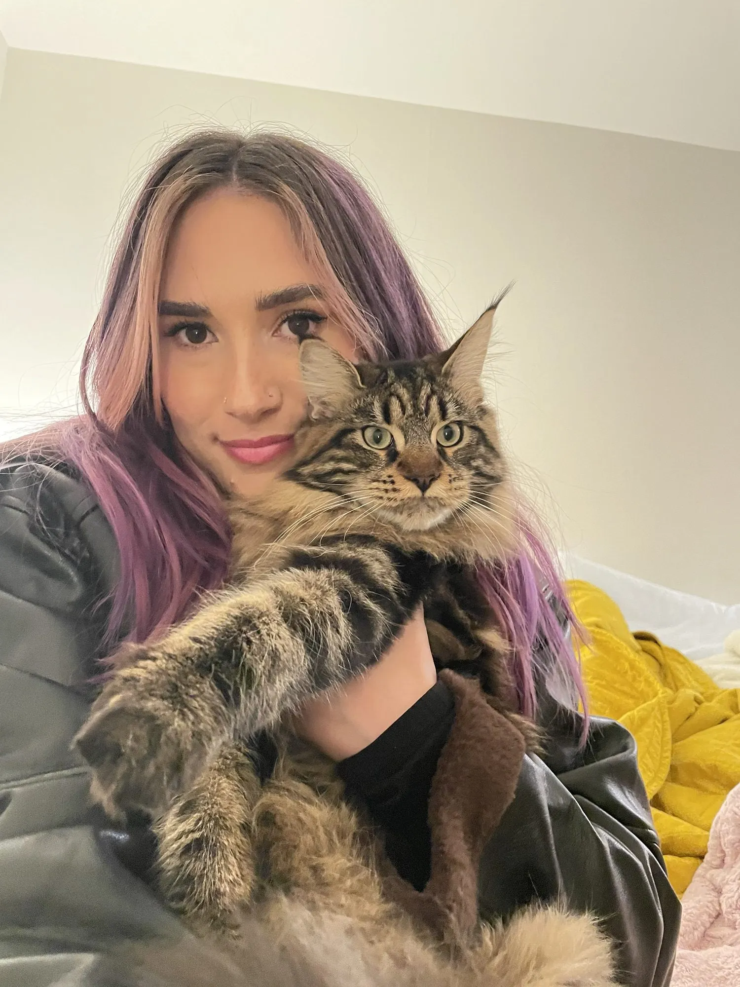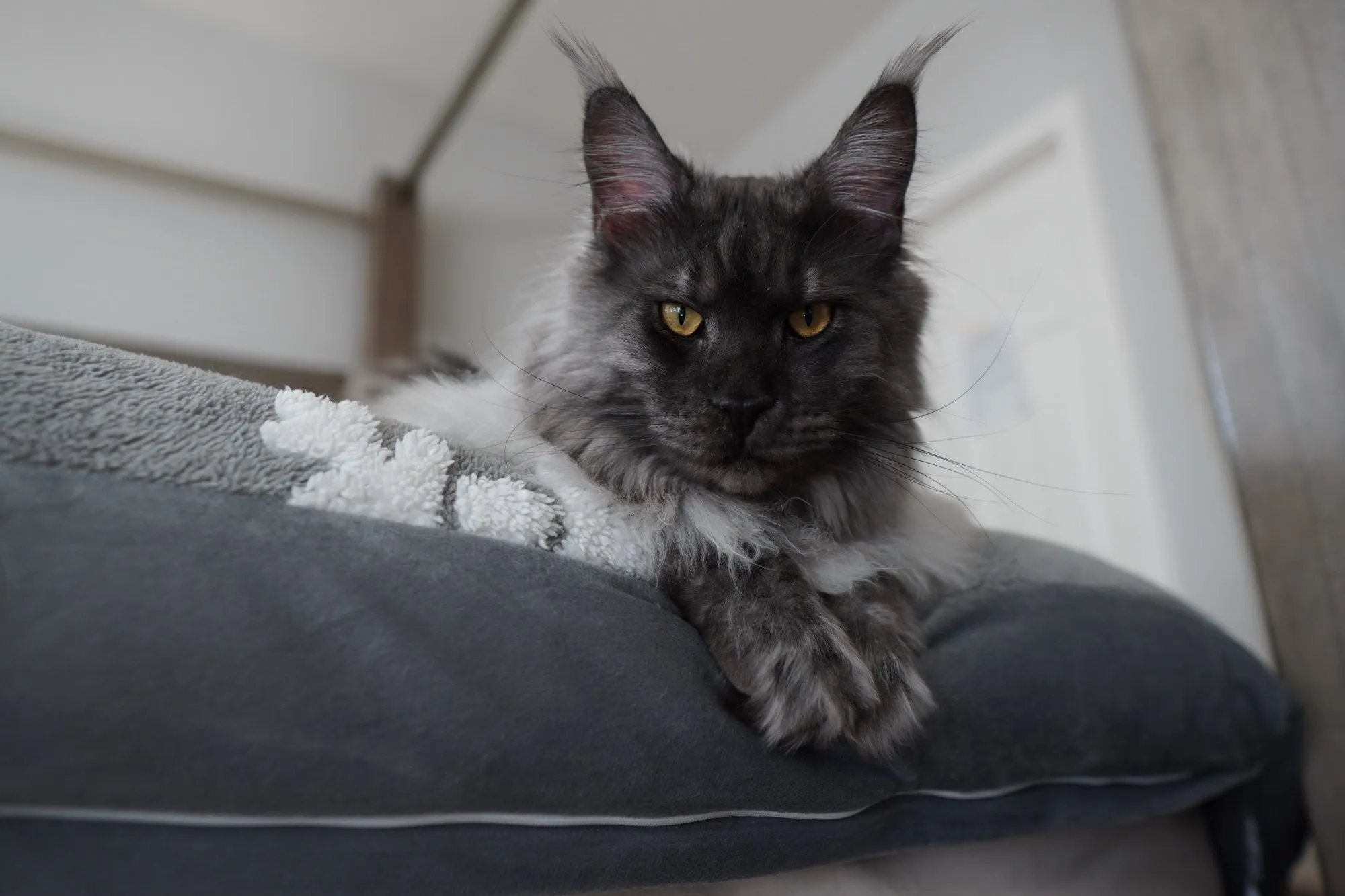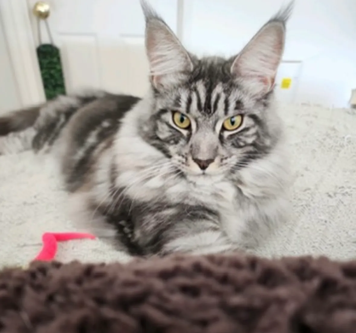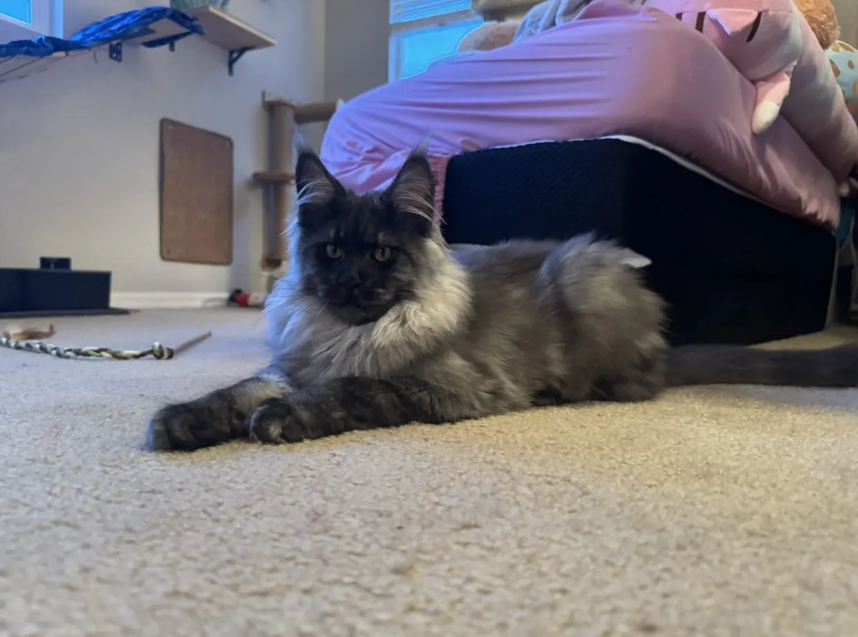 “Our Maine Coon, Bear, is everything we hoped for and more. Huge paws, thick coat, and the sweetest temperament. He even gets along with our dog!”