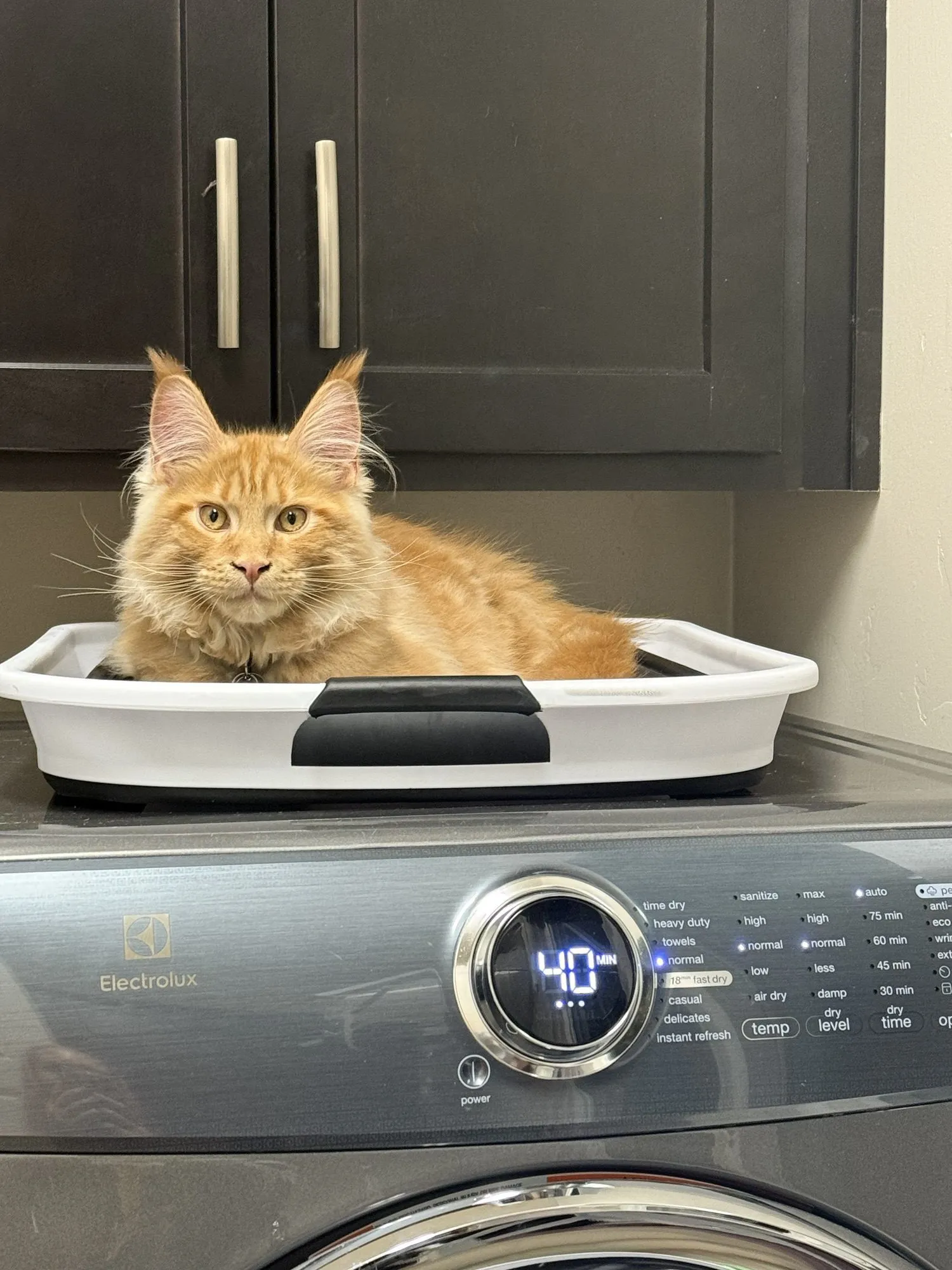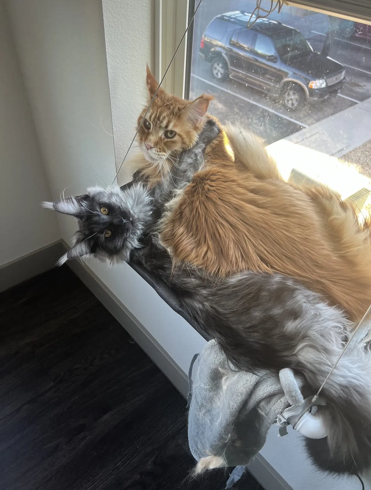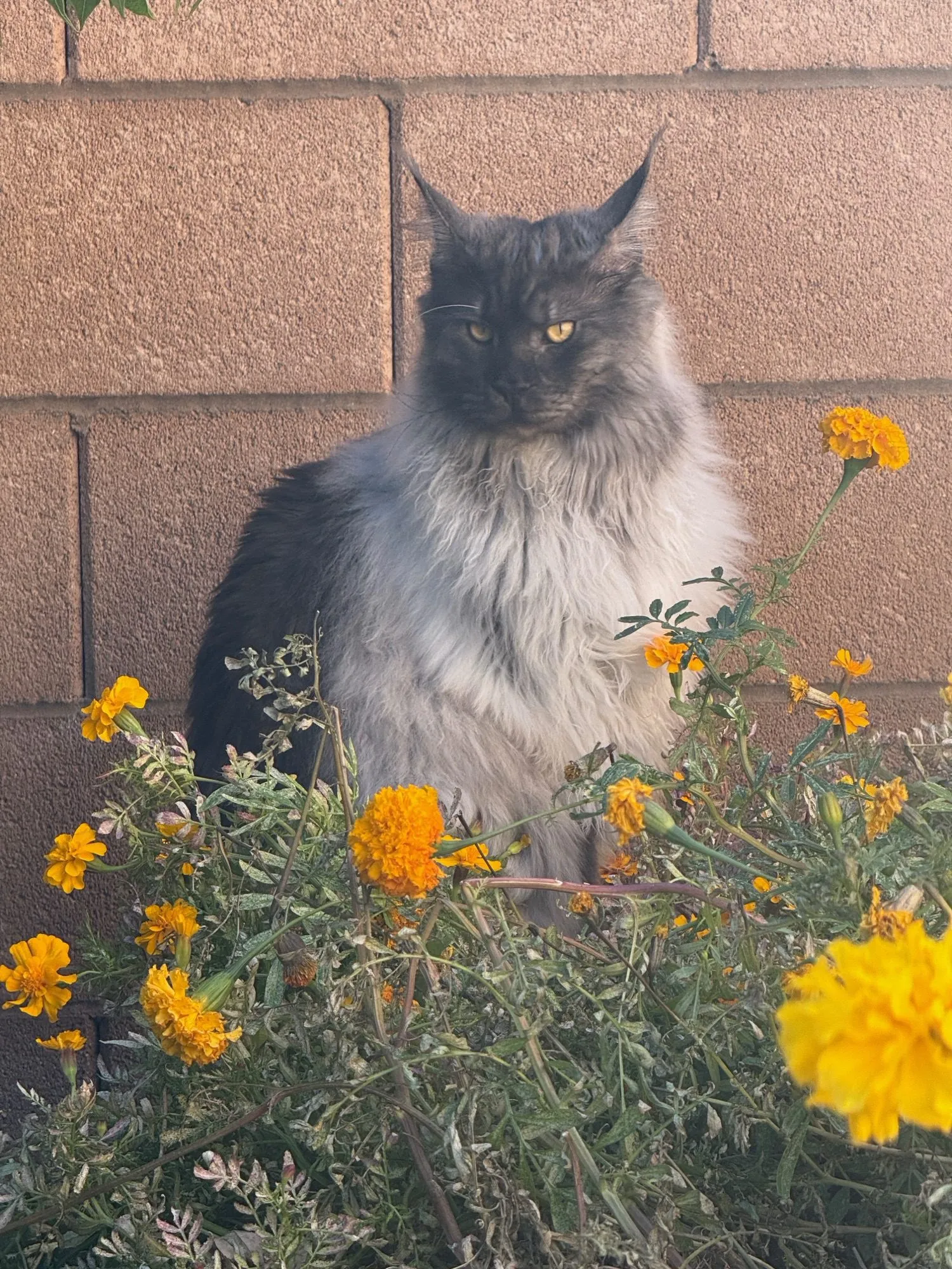 “Our Maine Coon, Bear, is everything we hoped for and more. Huge paws, thick coat, and the sweetest temperament. He even gets along with our dog!”