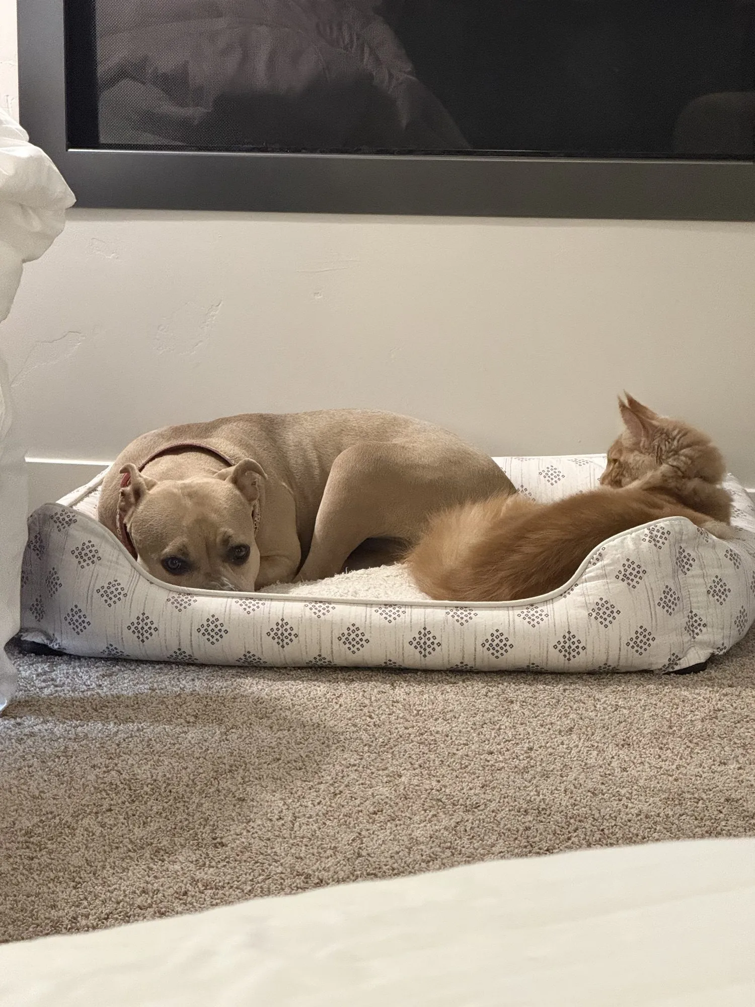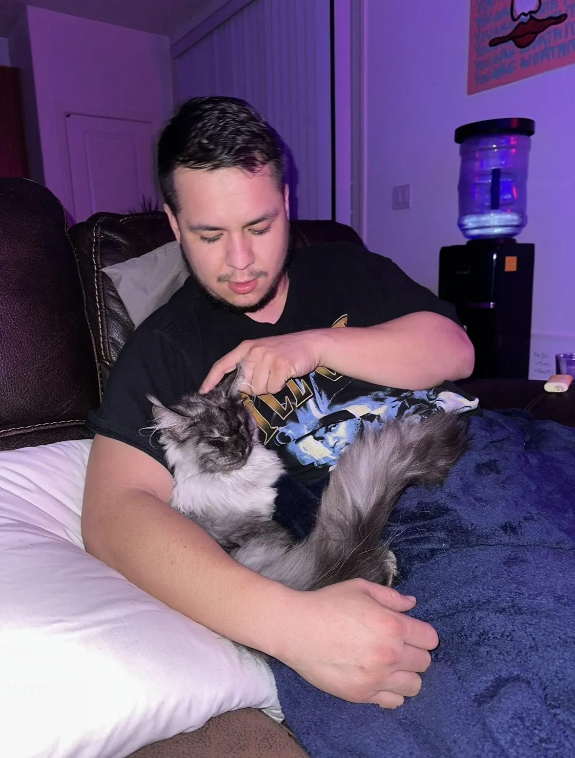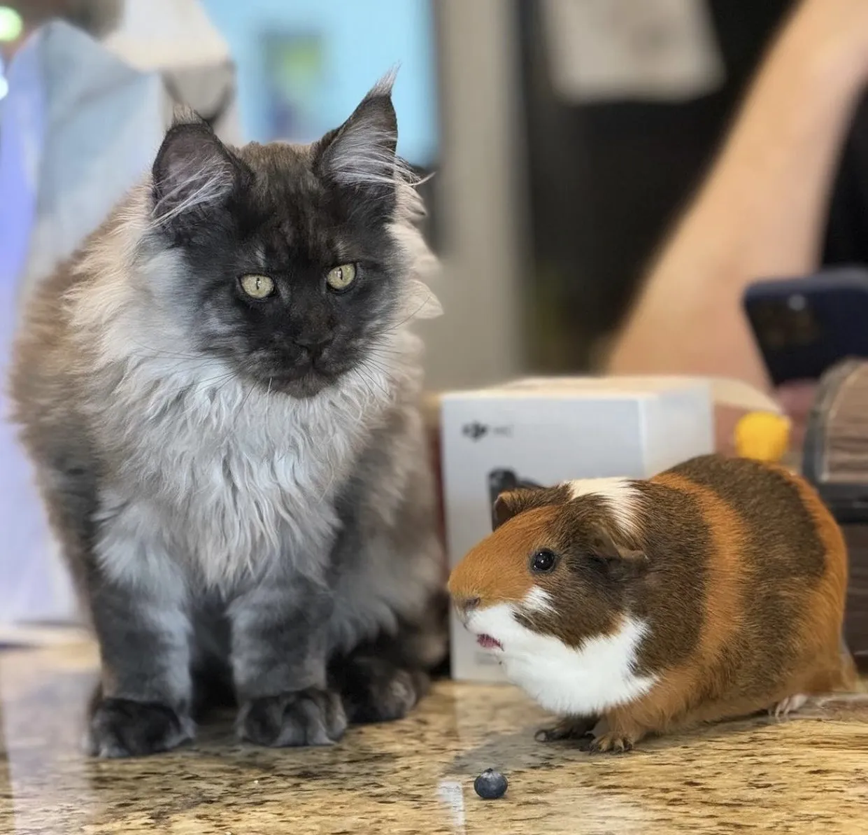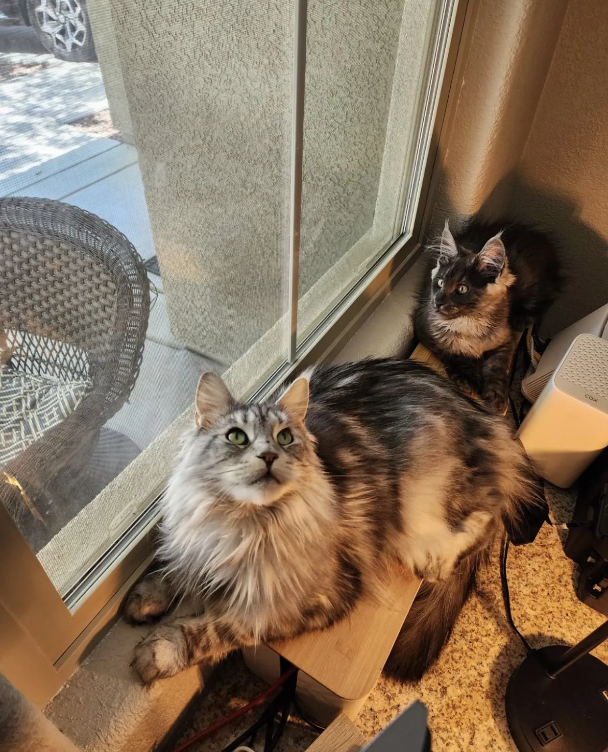 “Our Maine Coon, Bear, is everything we hoped for and more. Huge paws, thick coat, and the sweetest temperament. He even gets along with our dog!”